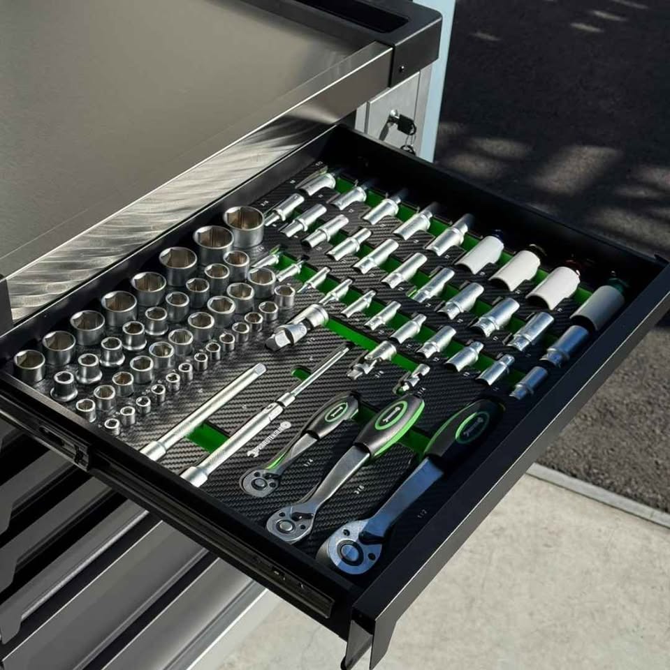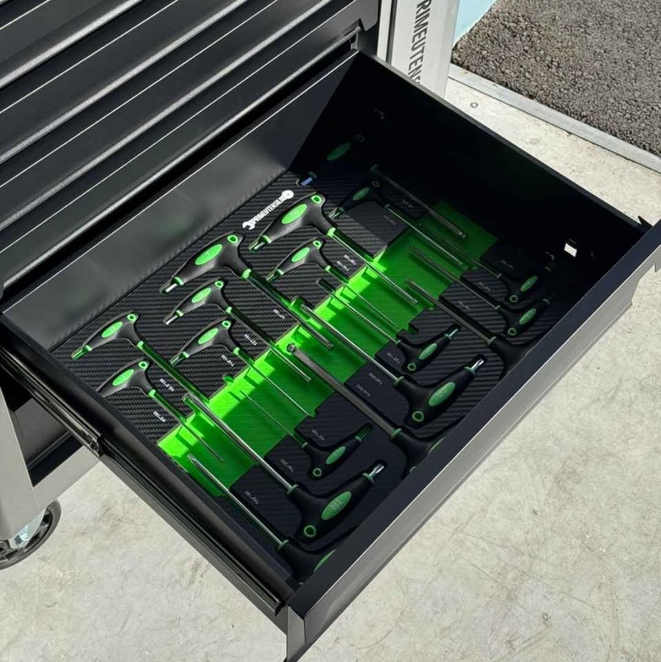 - Število predalov: 8, od tega 6 z orodjem, kot je prikazano na sliki, z vložki iz termoformirane pene