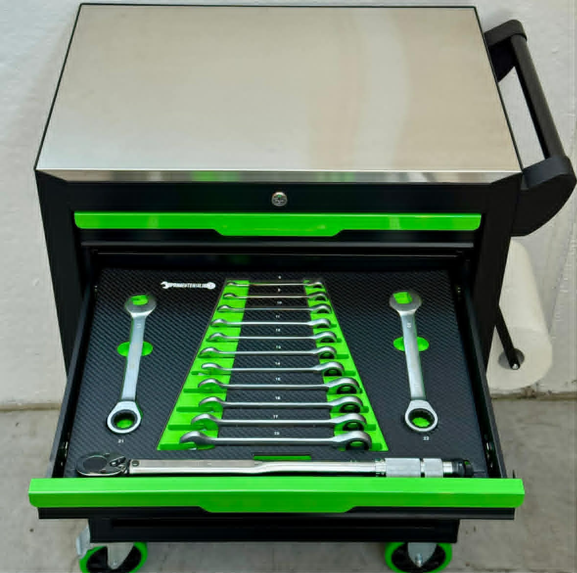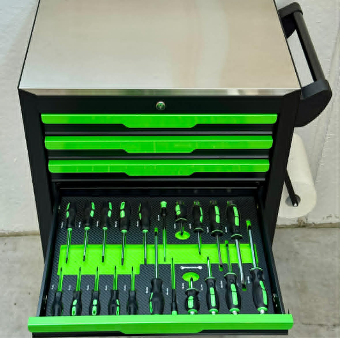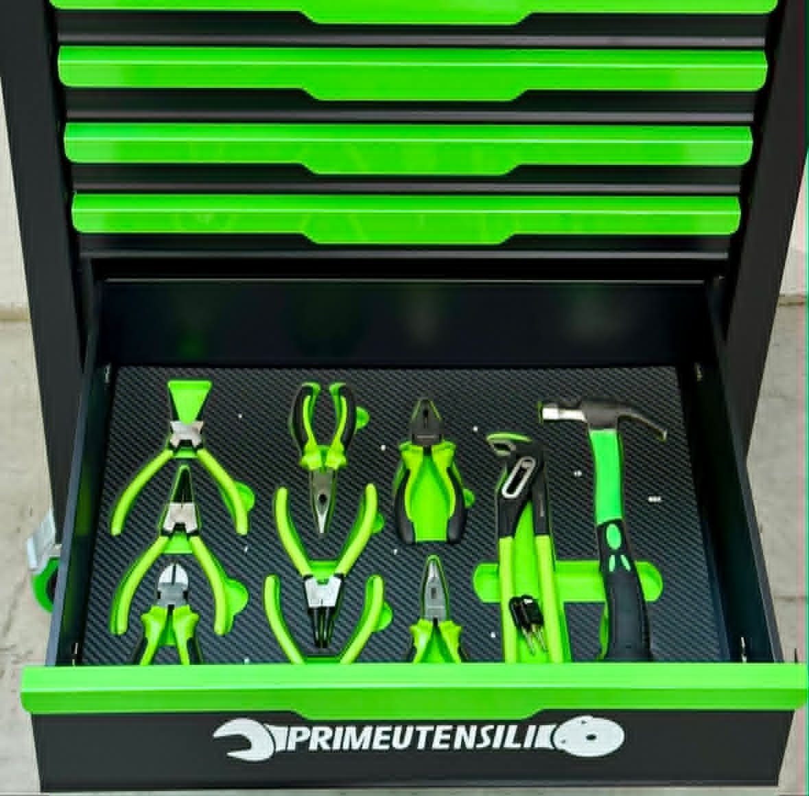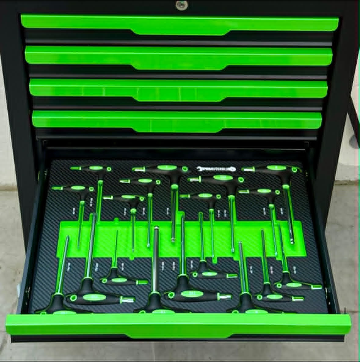 - Število predalov: 7, od tega 6 z orodjem, kot je prikazano na sliki, z vložki iz termoformirane pene